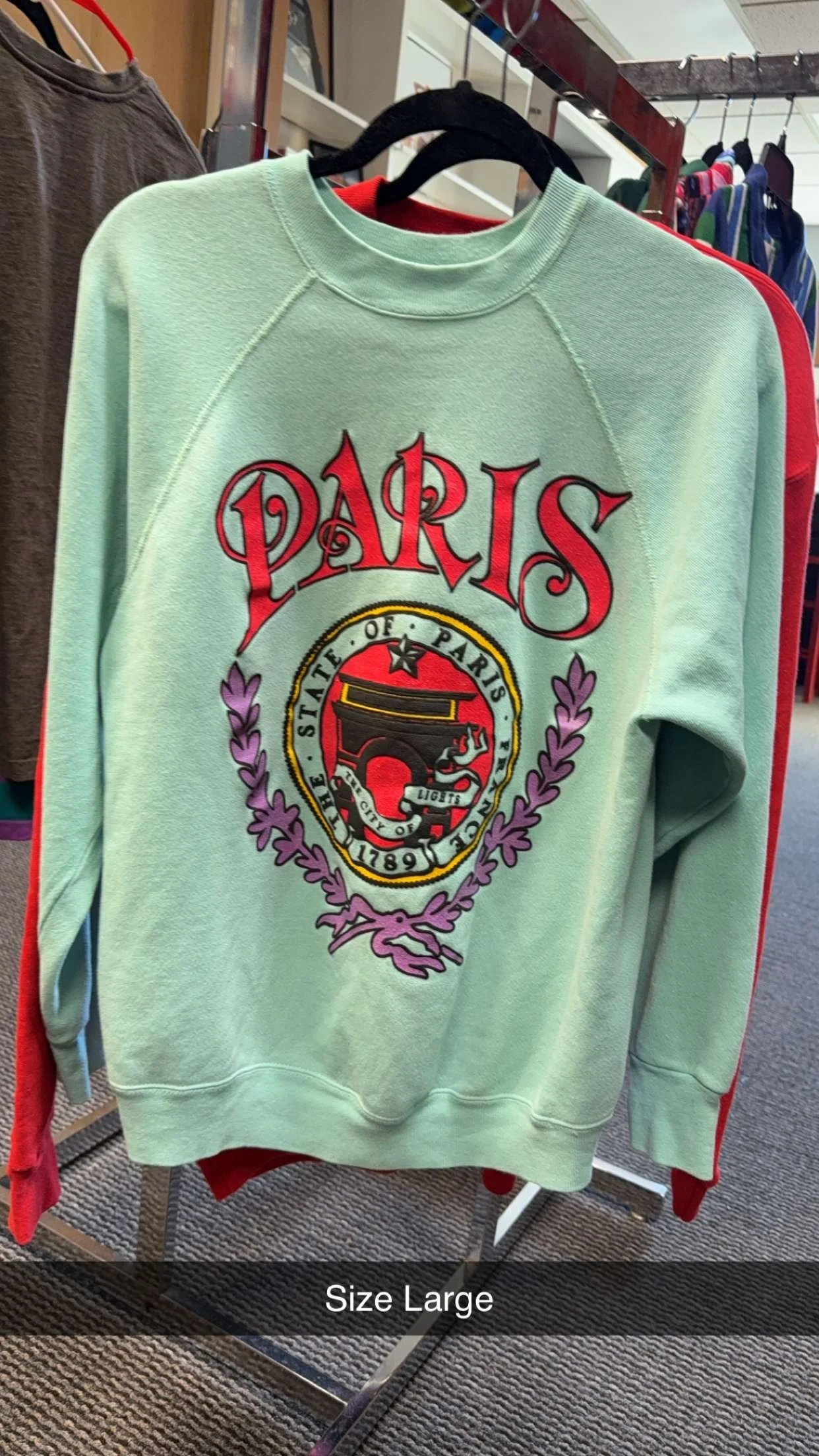 Shop › Thrift Paris Crew Sweatshirt size Large Image 1 of 2 Image 2 of 2 Thrift Paris Crew Sweatshirt size Large $50.00 Tultex thrift Paris sweatshirt, baby blue, size large, fits smaller, lighter weight, comfy, good condition! Add To Cart Added! Tultex thrift Paris sweatshirt, baby blue, size large, fits smaller, lighter weight, comfy, good condition!